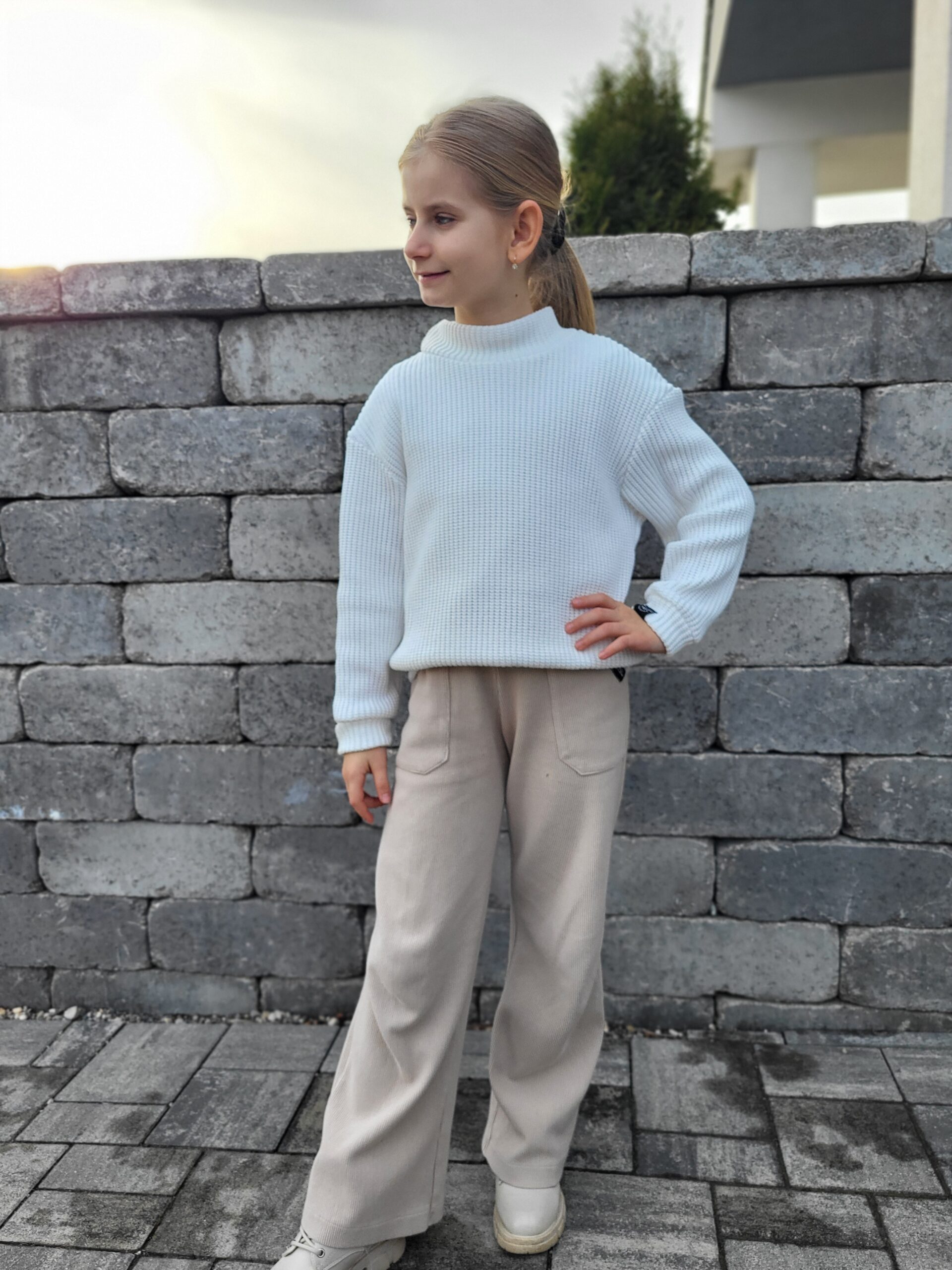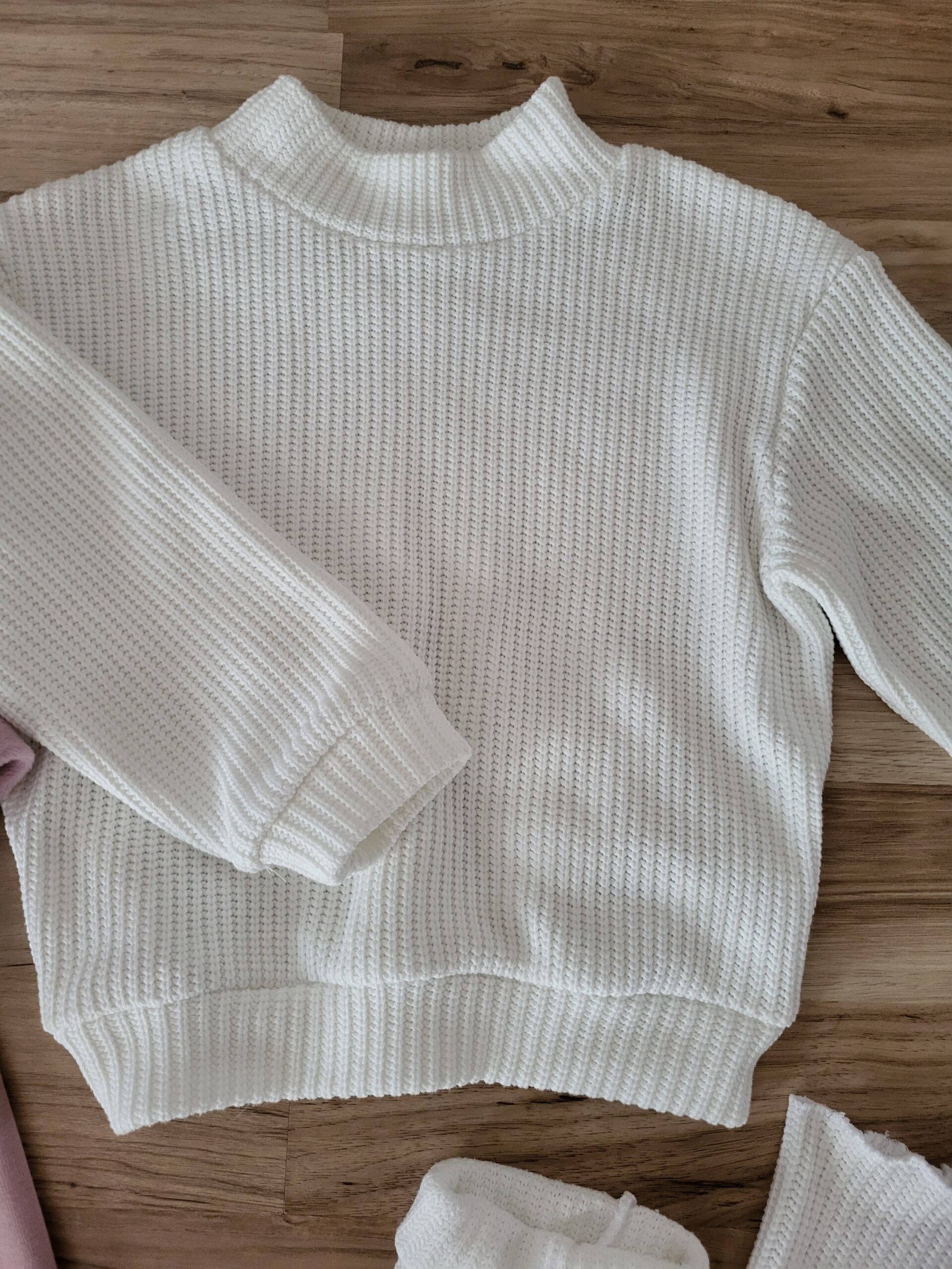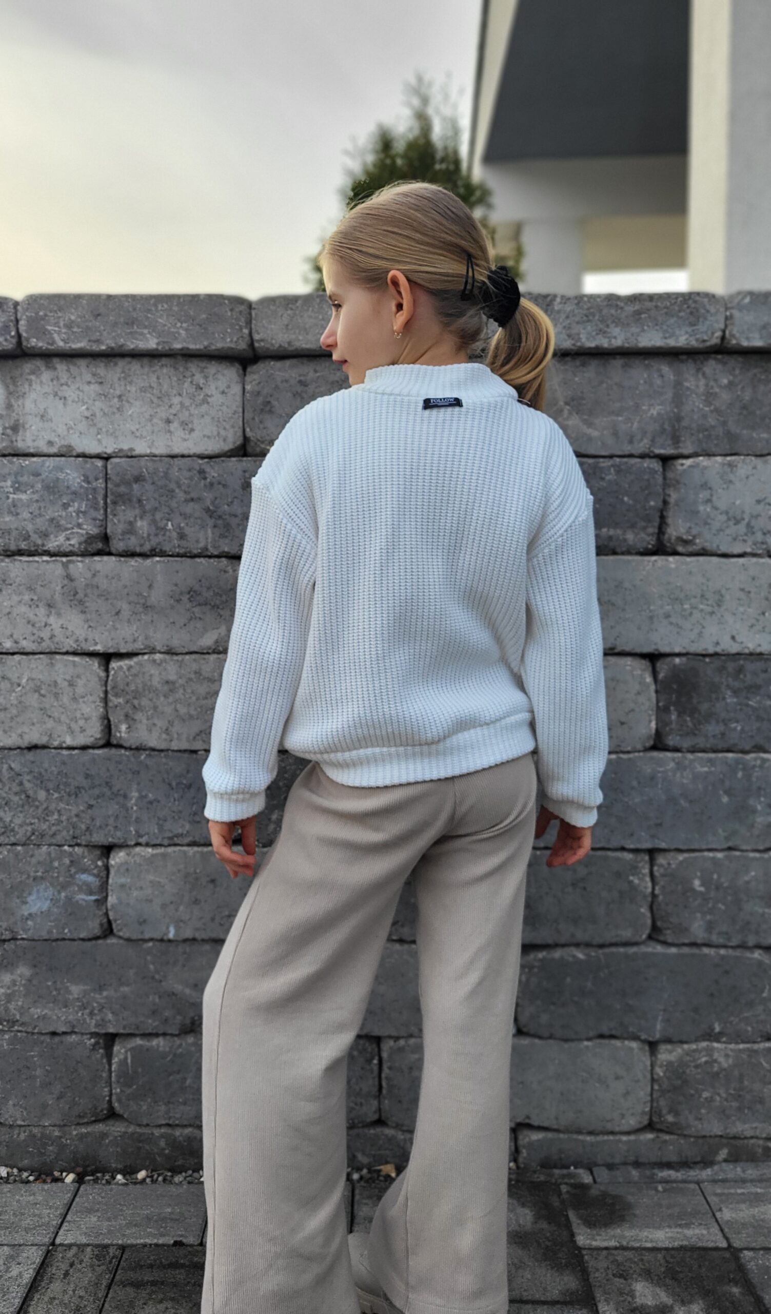 Sveter je ležerného strihu so stojačikovým lemom. Perfektne sedí a je pohodlný. K svetru si môžete doladiť legíny aj čiapku