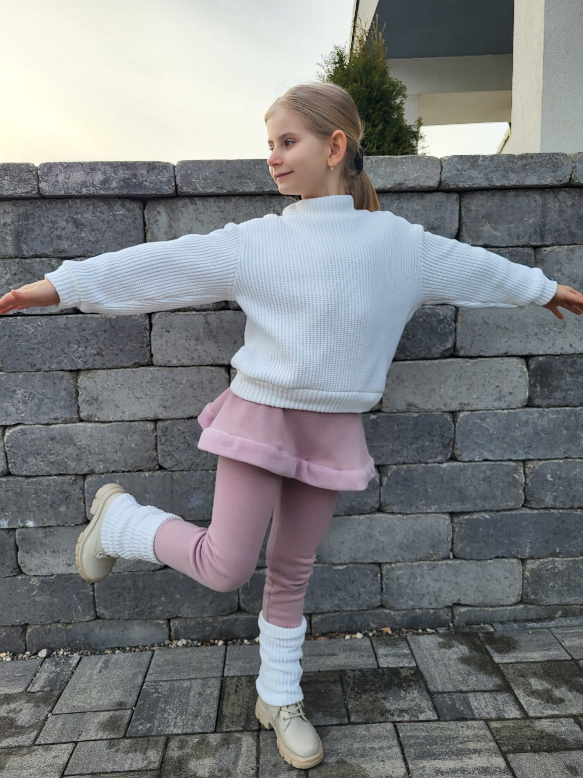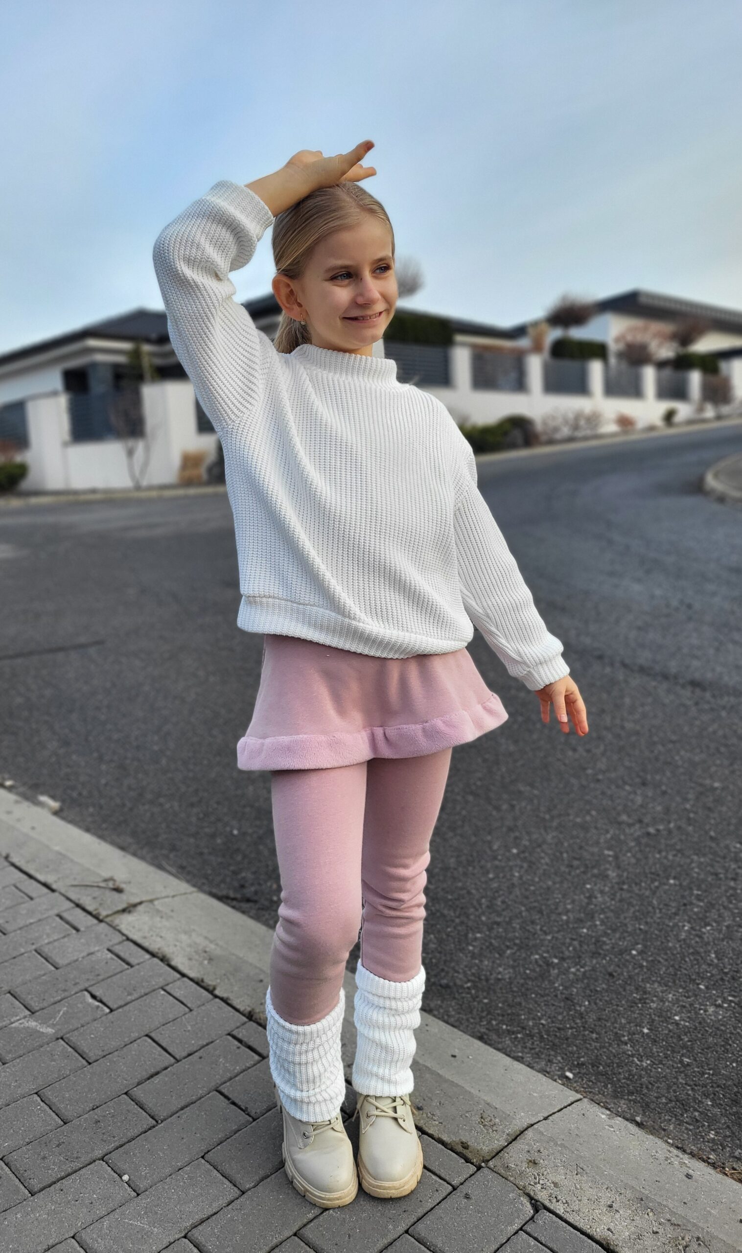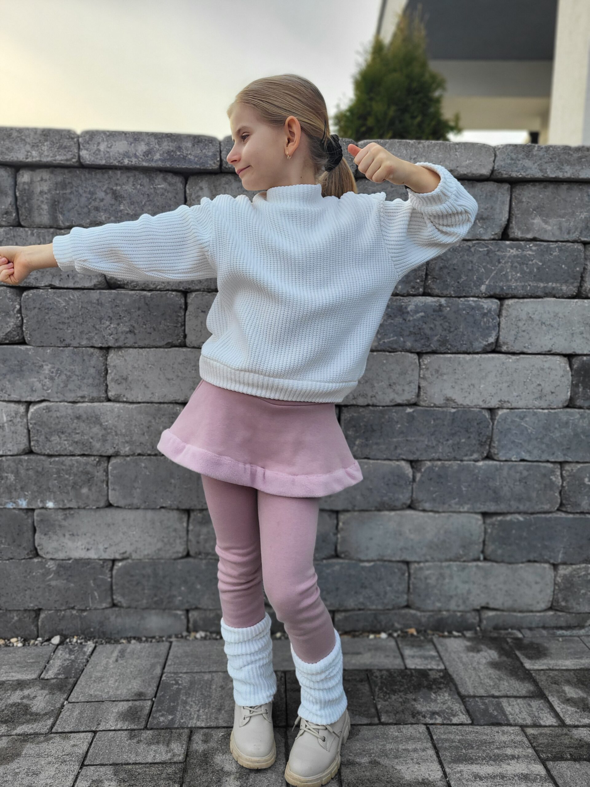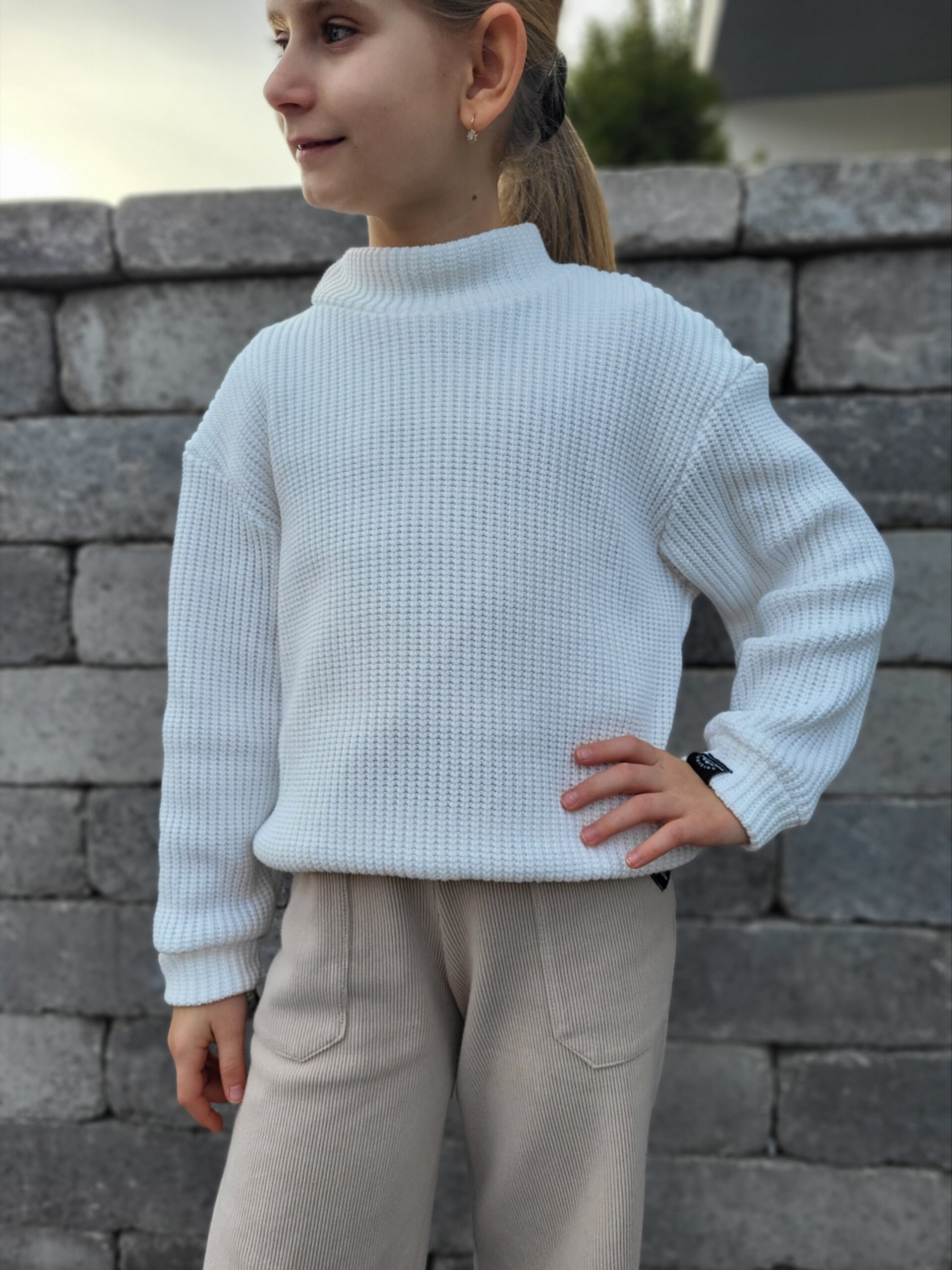 Sveter je ležerného strihu so stojačikovým lemom. Perfektne sedí a je pohodlný. K svetru si môžete doladiť legíny aj čiapku