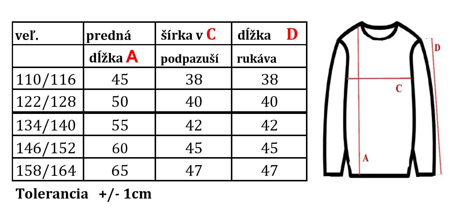 TABUĹKA VEĽKOSTI: