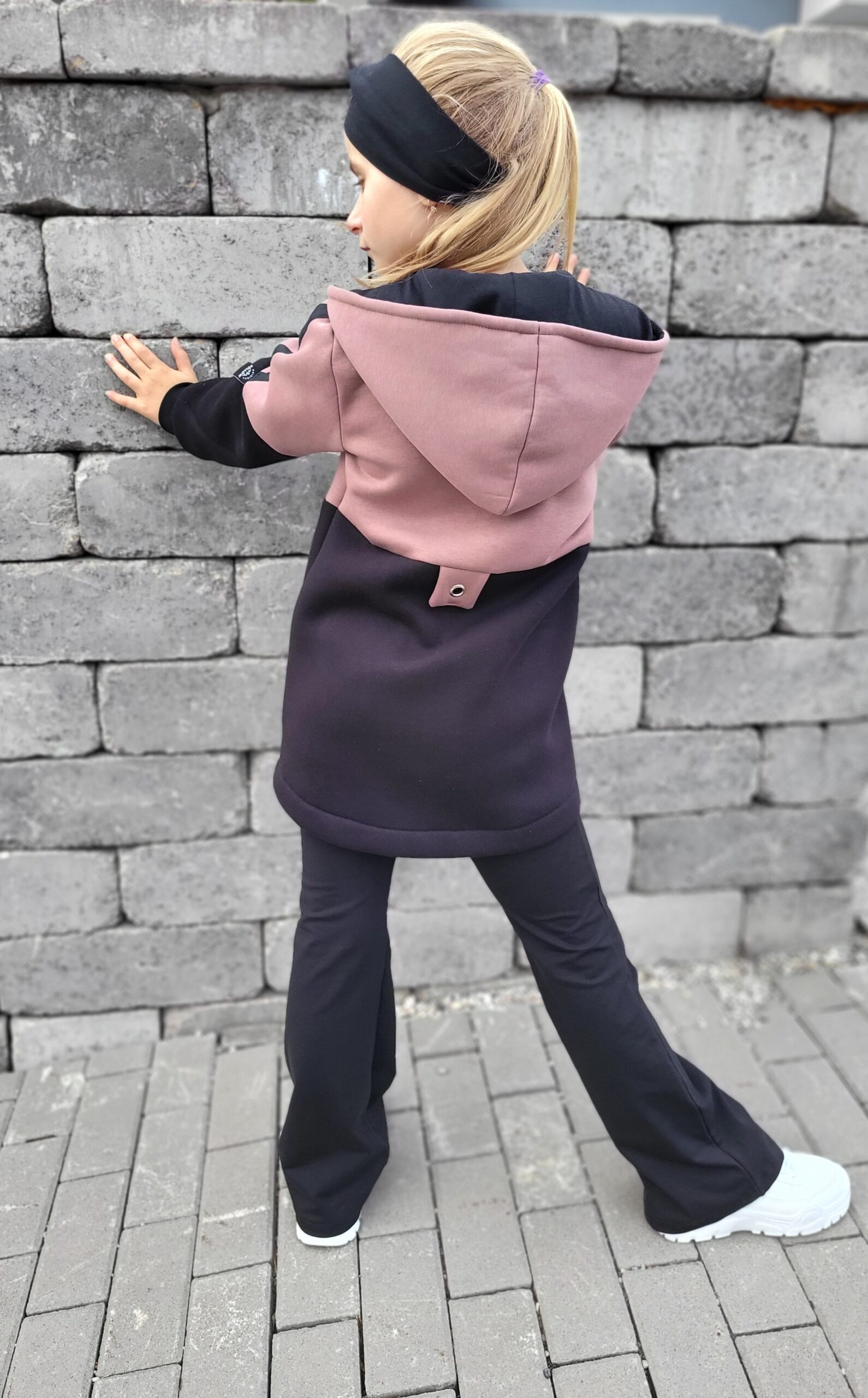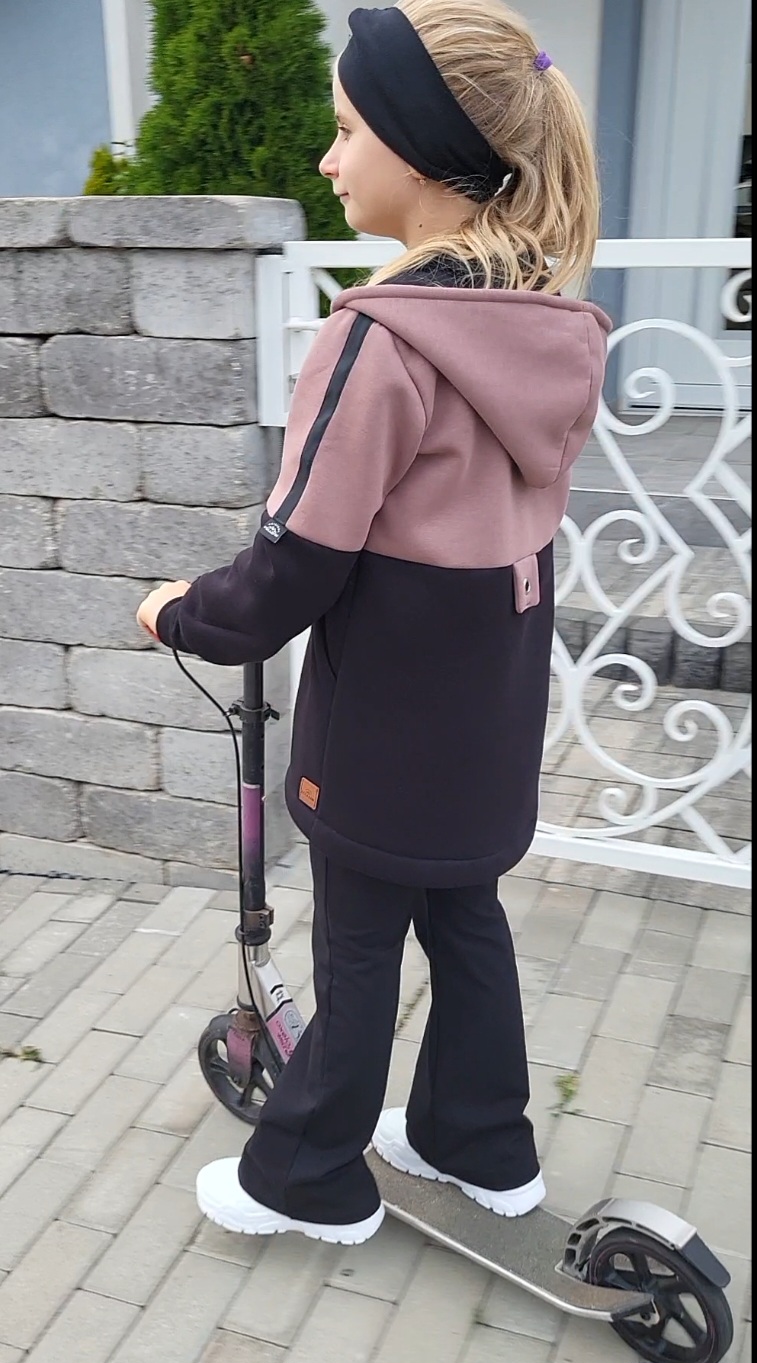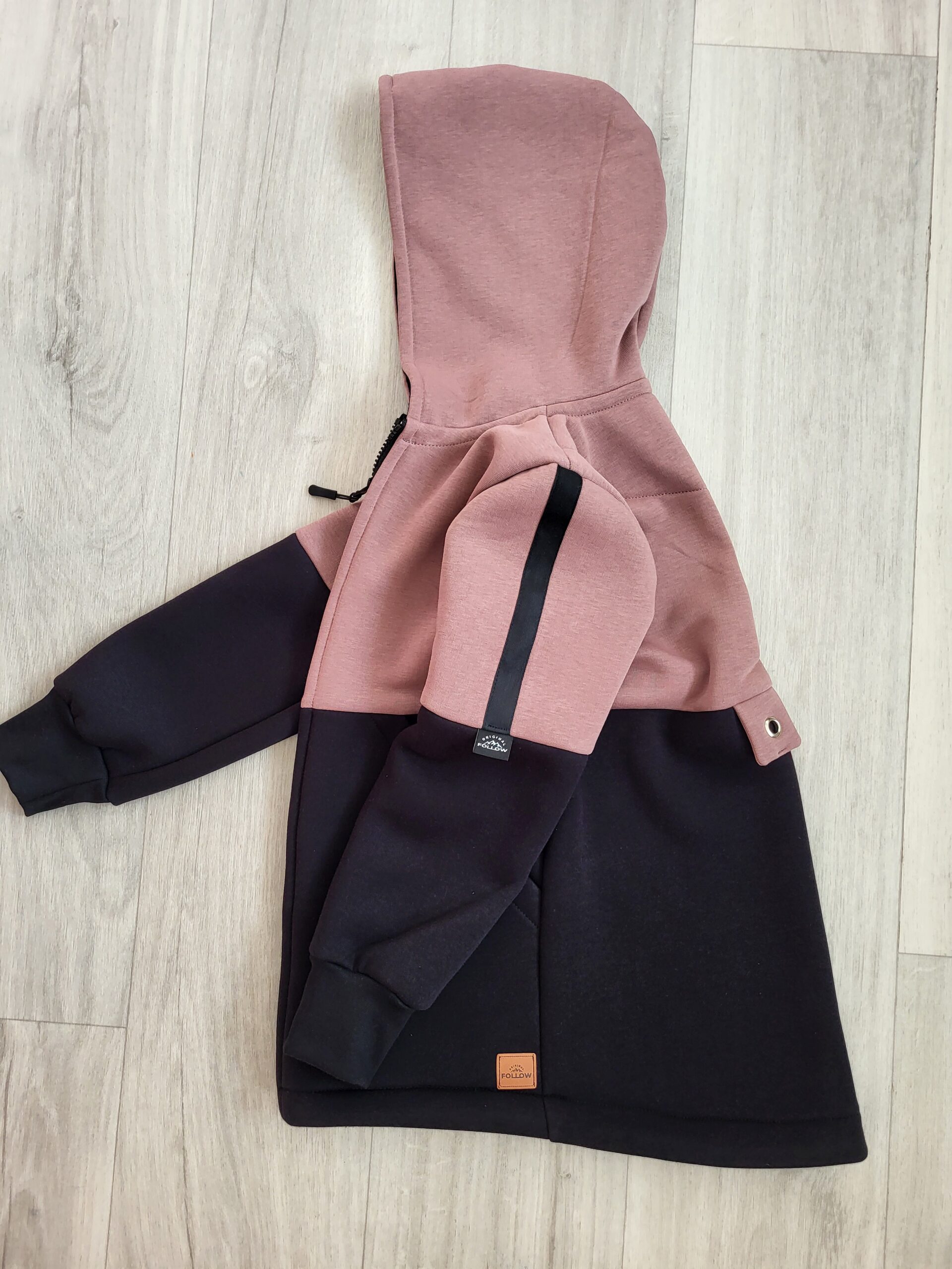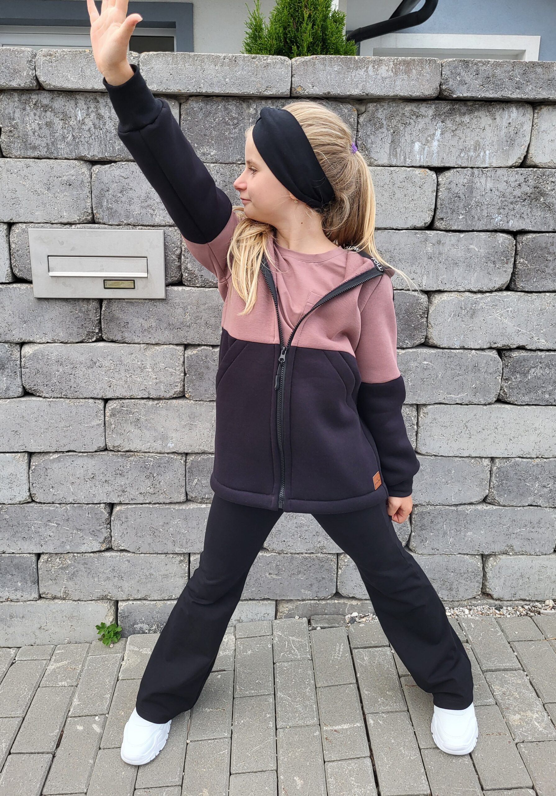 Mikina je jemne predlženého strihu, s vreckami a kapucňou. Zapínanie je na zips. Perfektne sedí, je teplá a pohodlná. Ak si prajete inú kombináciu farieb, napíšte nám do poznámky v objednávke. K mikine si môžete doladiť legíny aj čiapku
