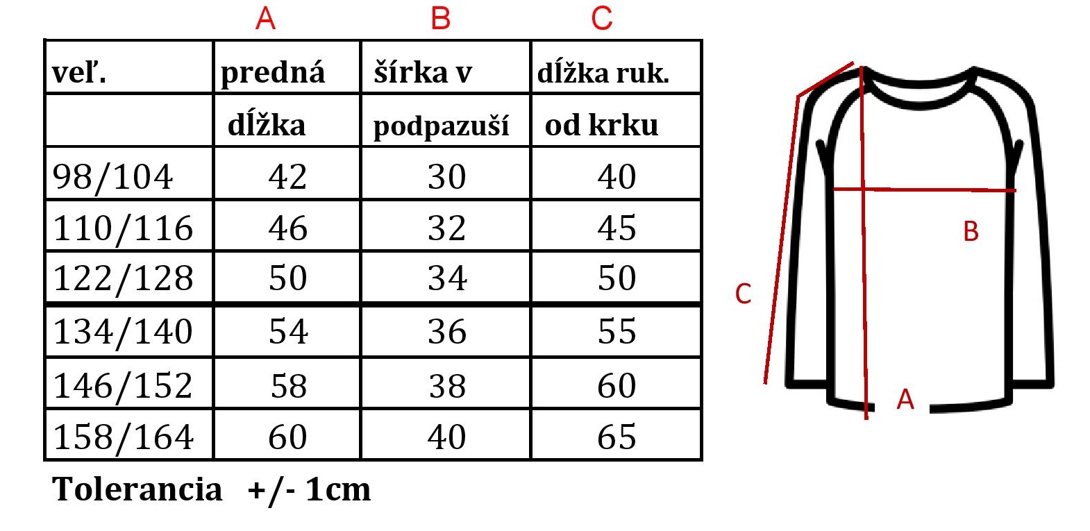 VEĽKOSTNÁ TABUĽKA: