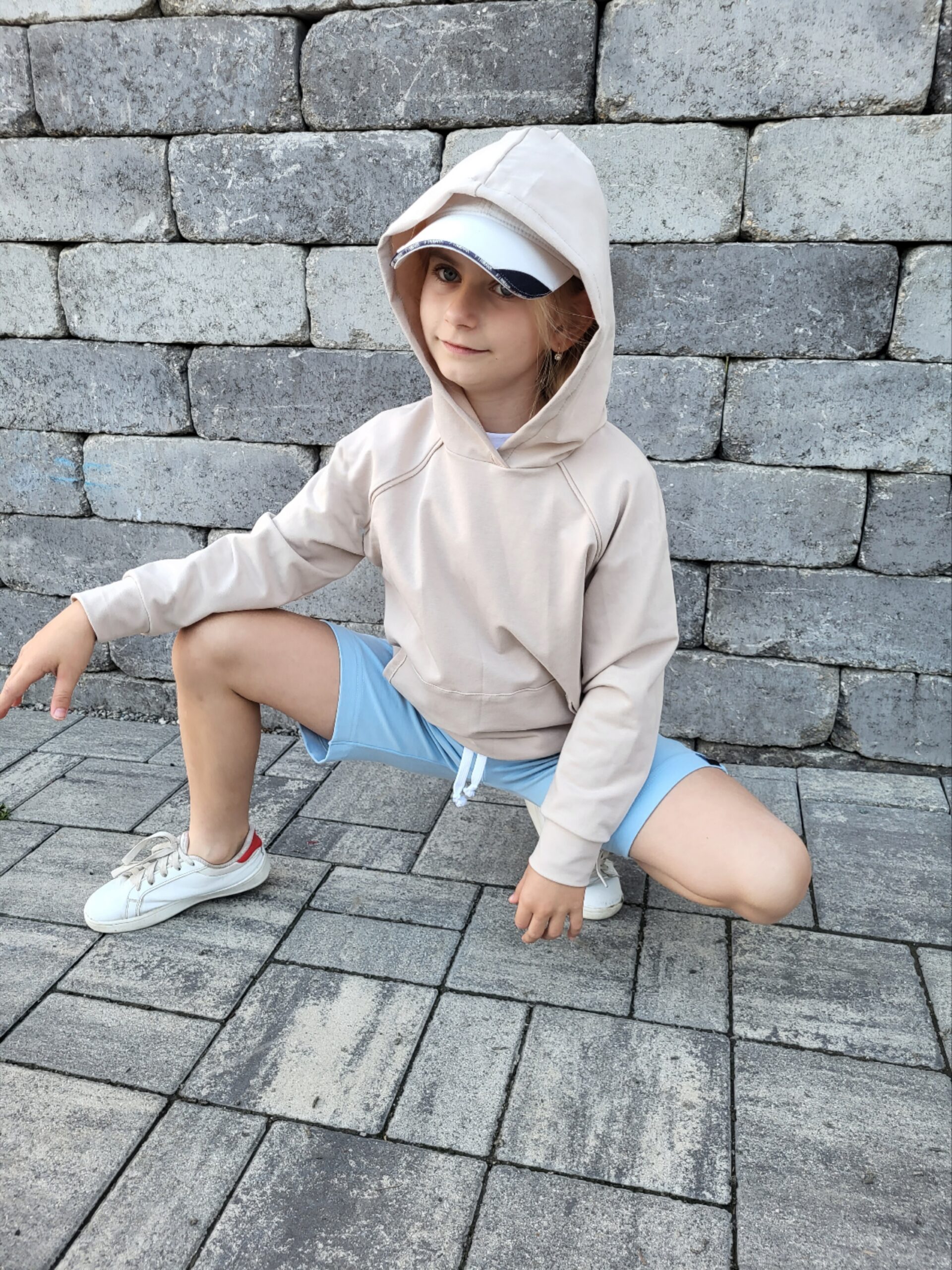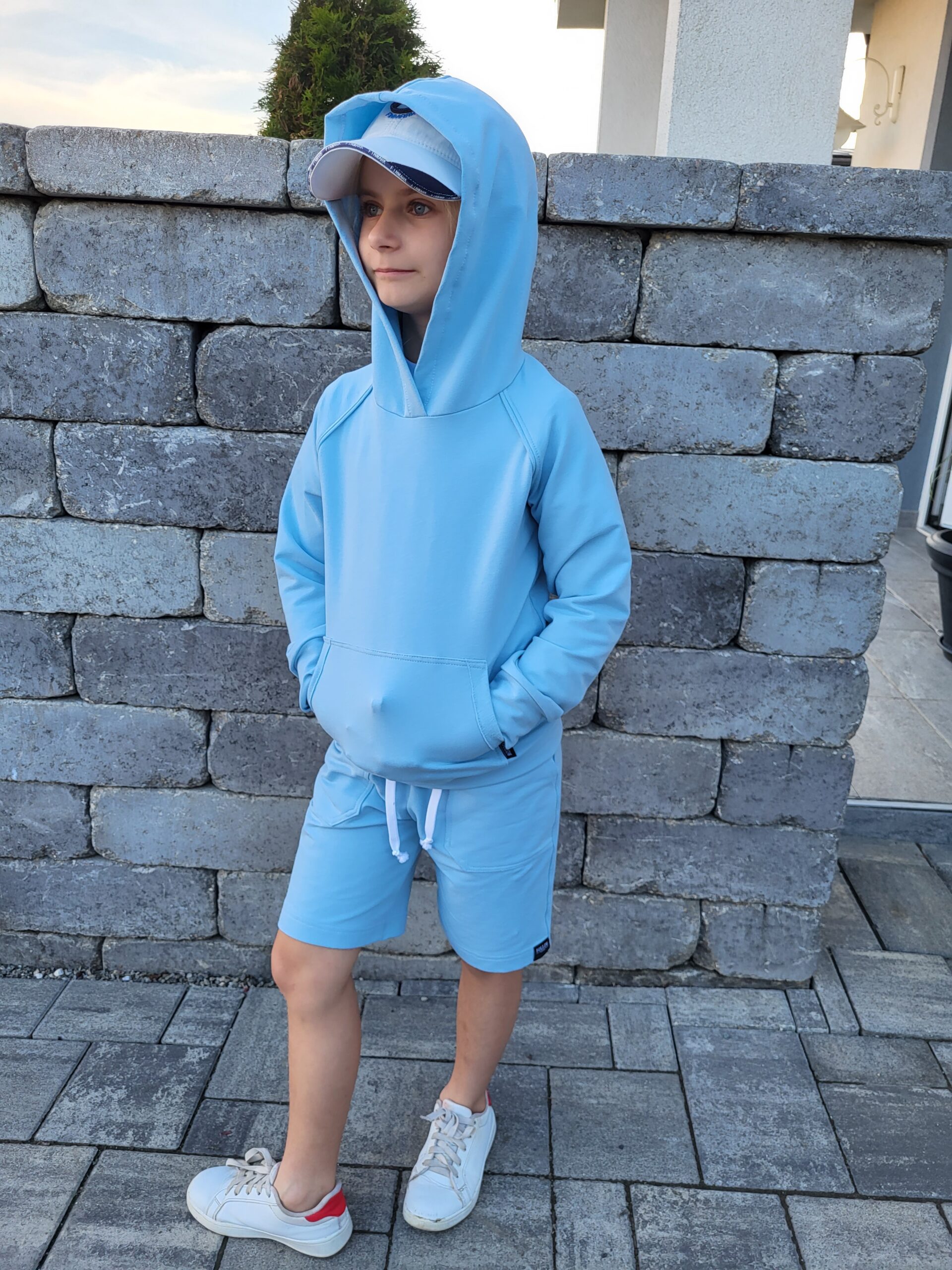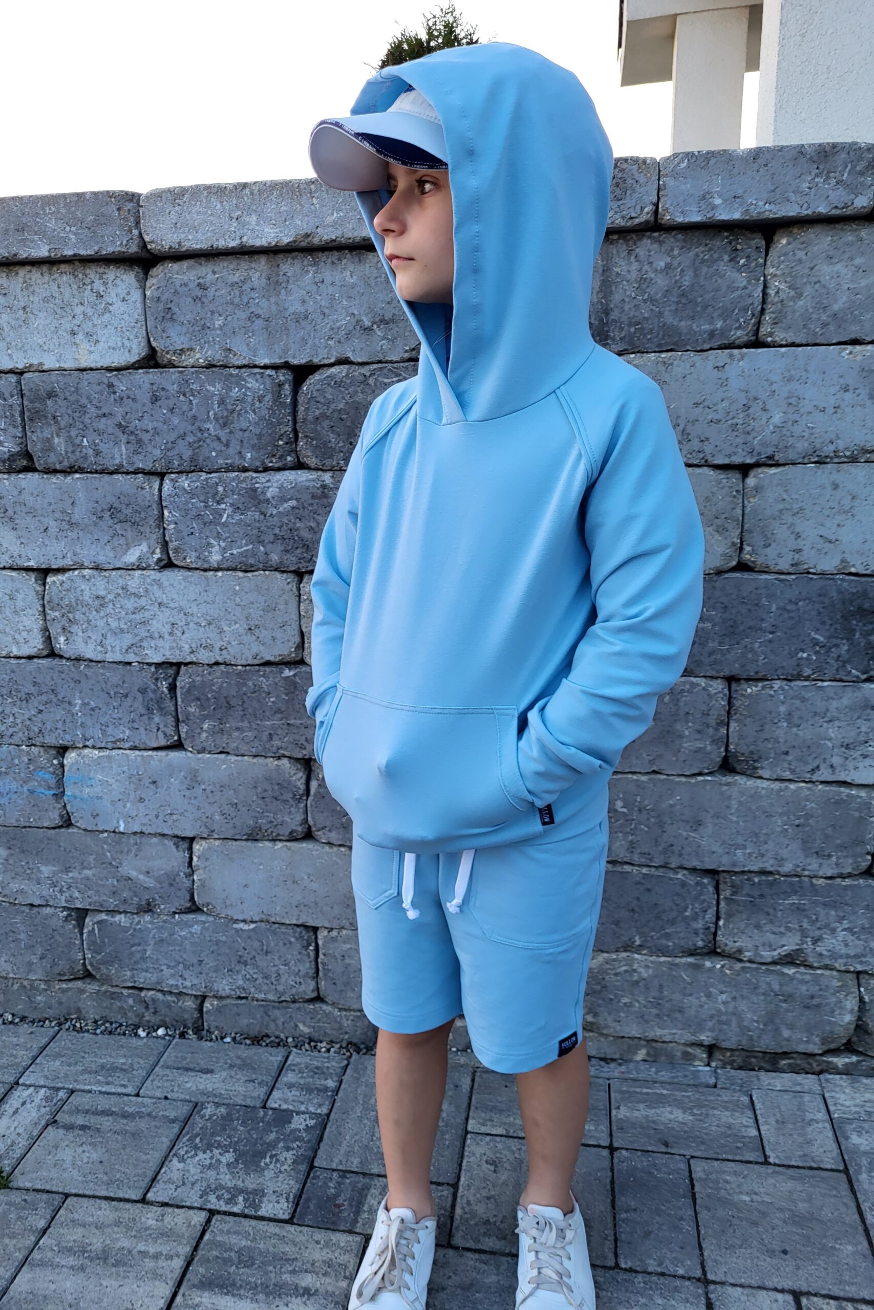 Mikina s raglanovými rukávmi a klokaním vreckom. Perfektne sedí a je pohodlná. K mikine si môžete doladiť tričko, tepláky, čiapku