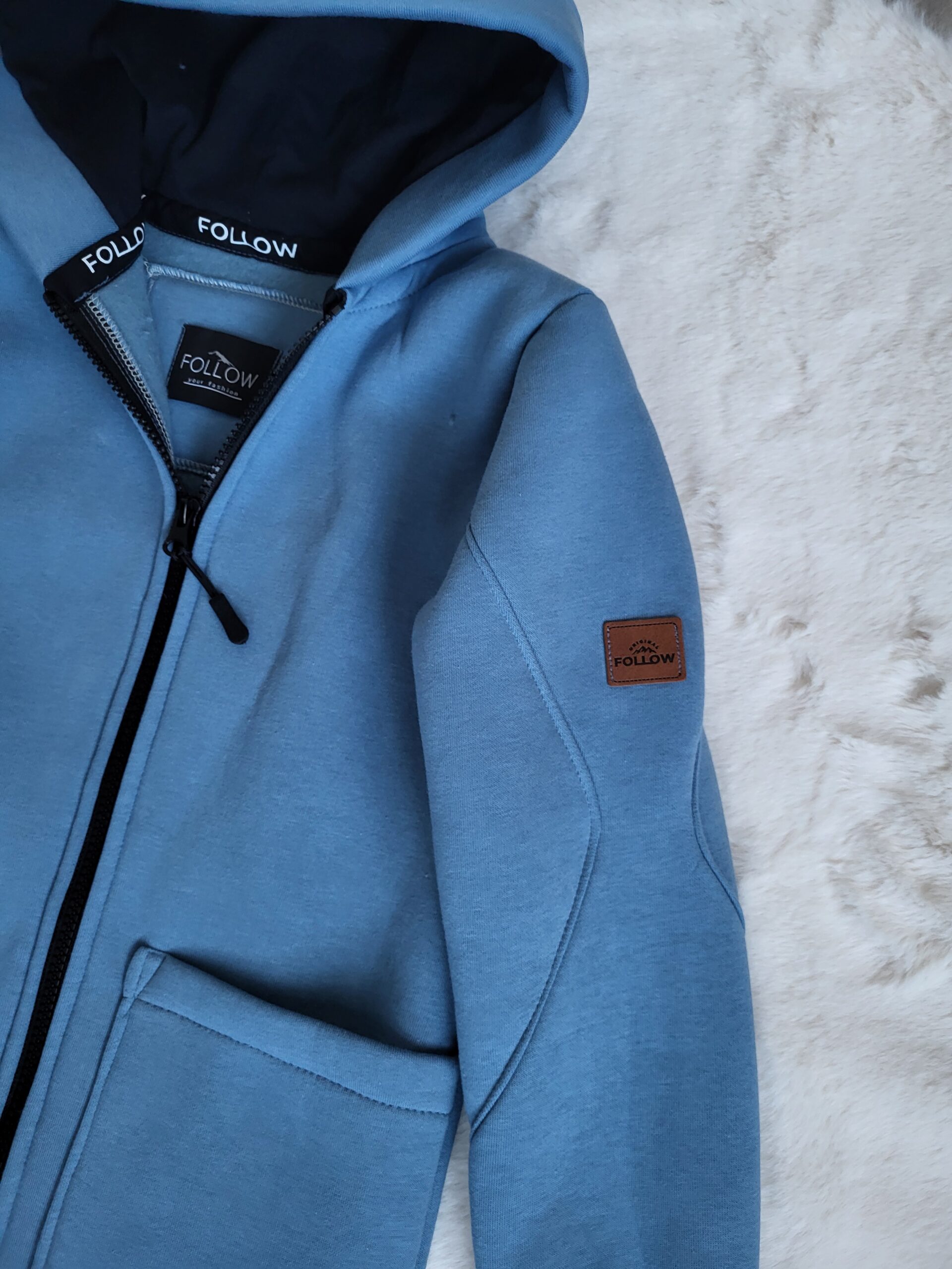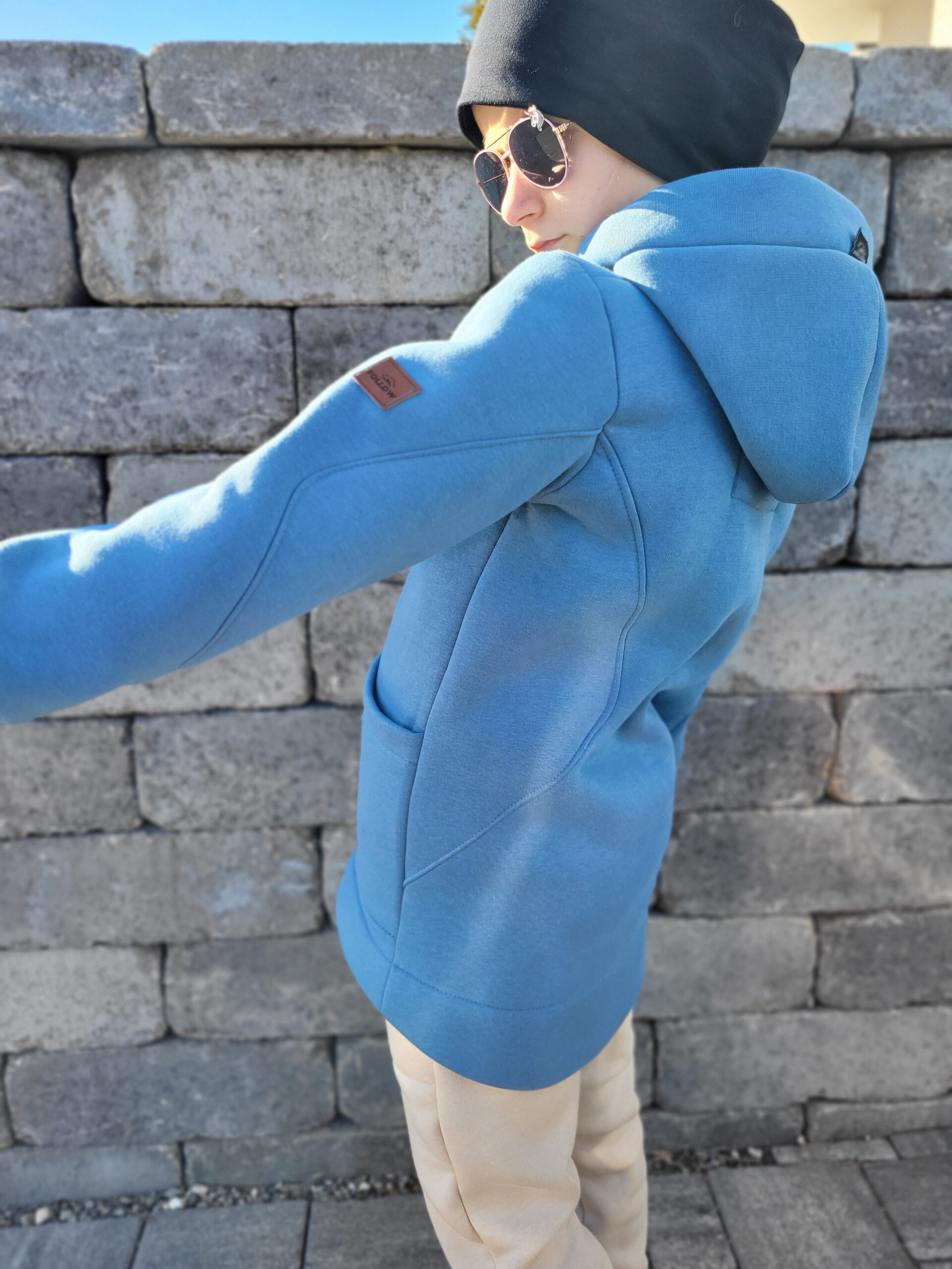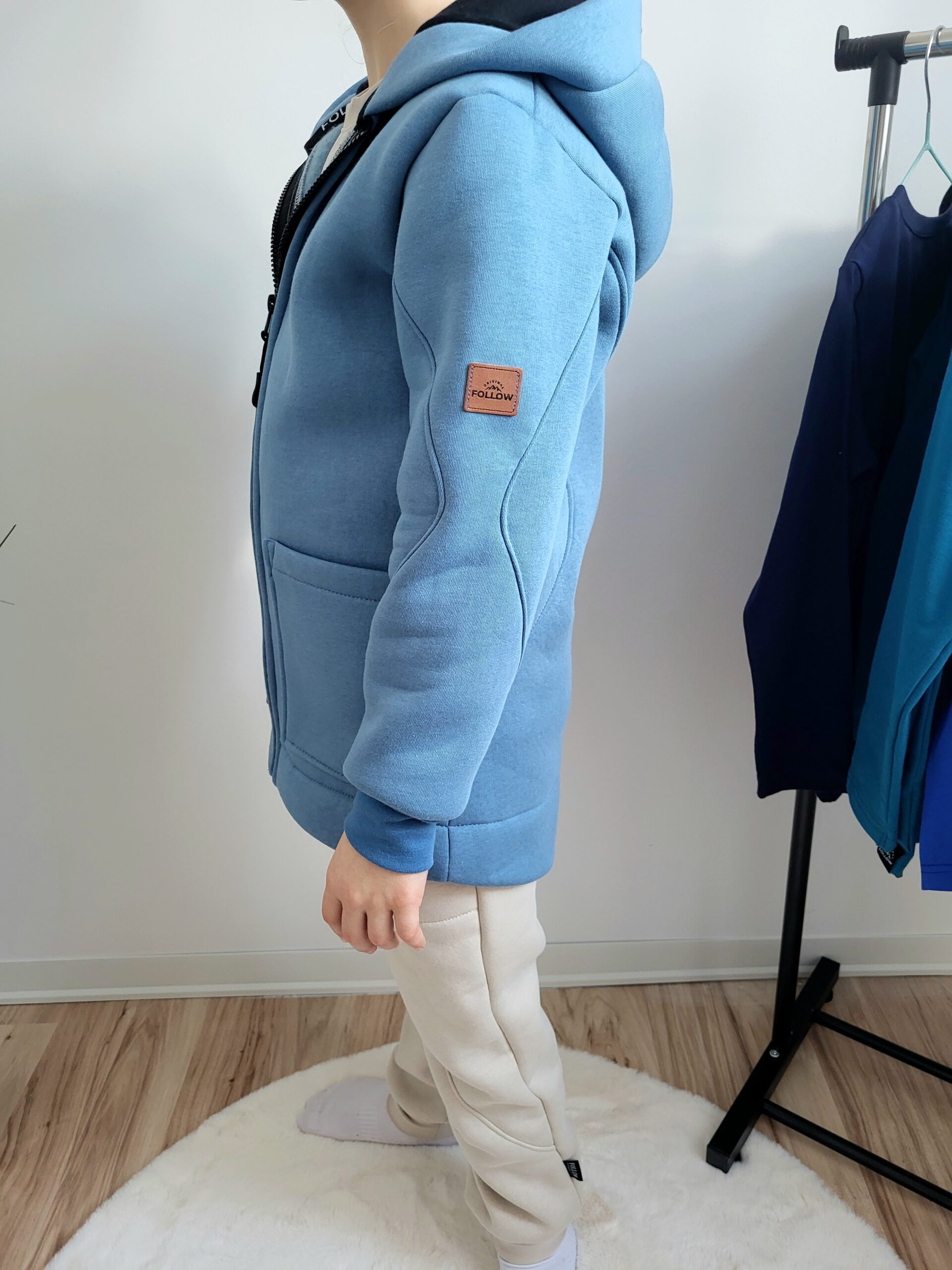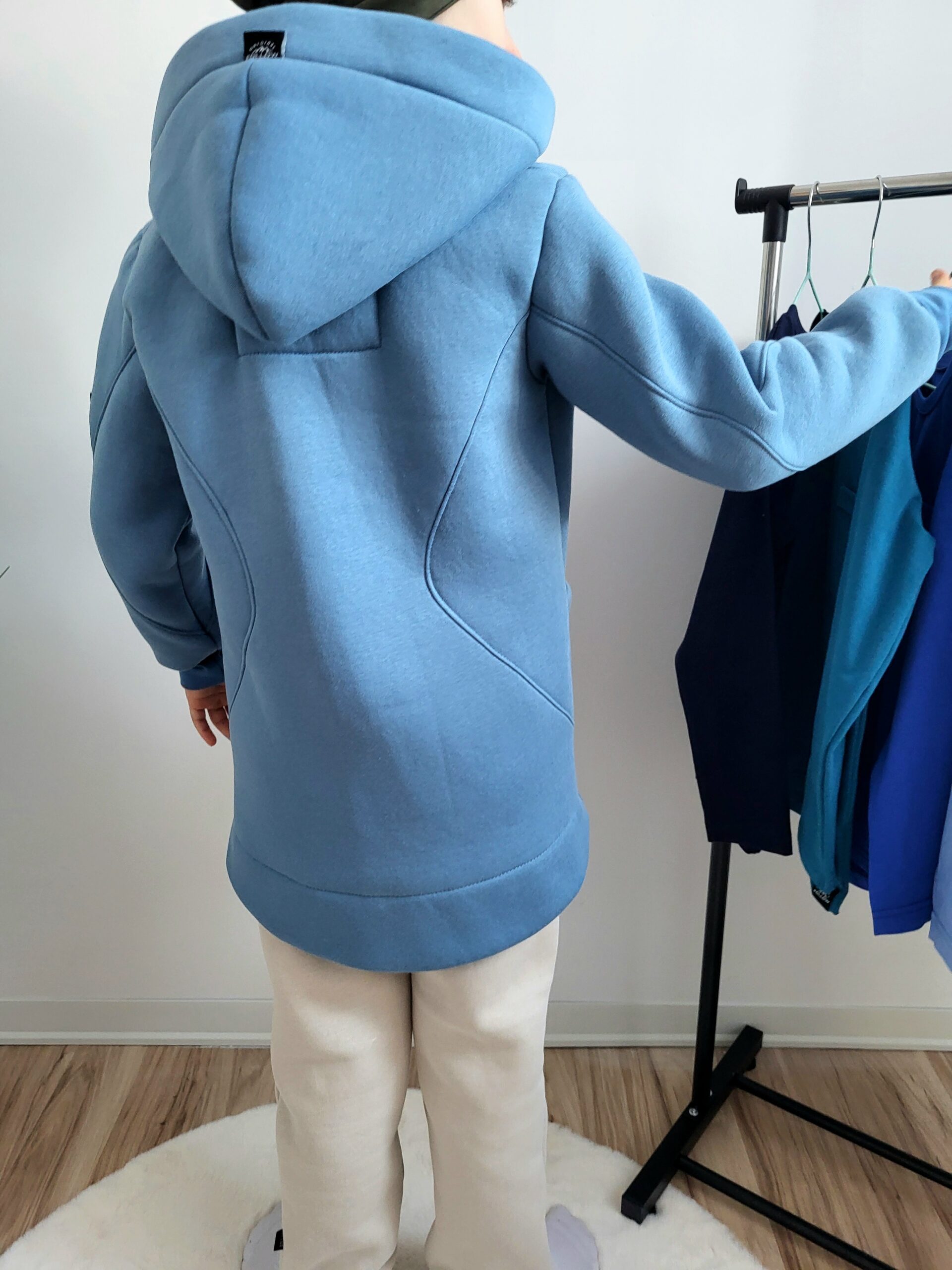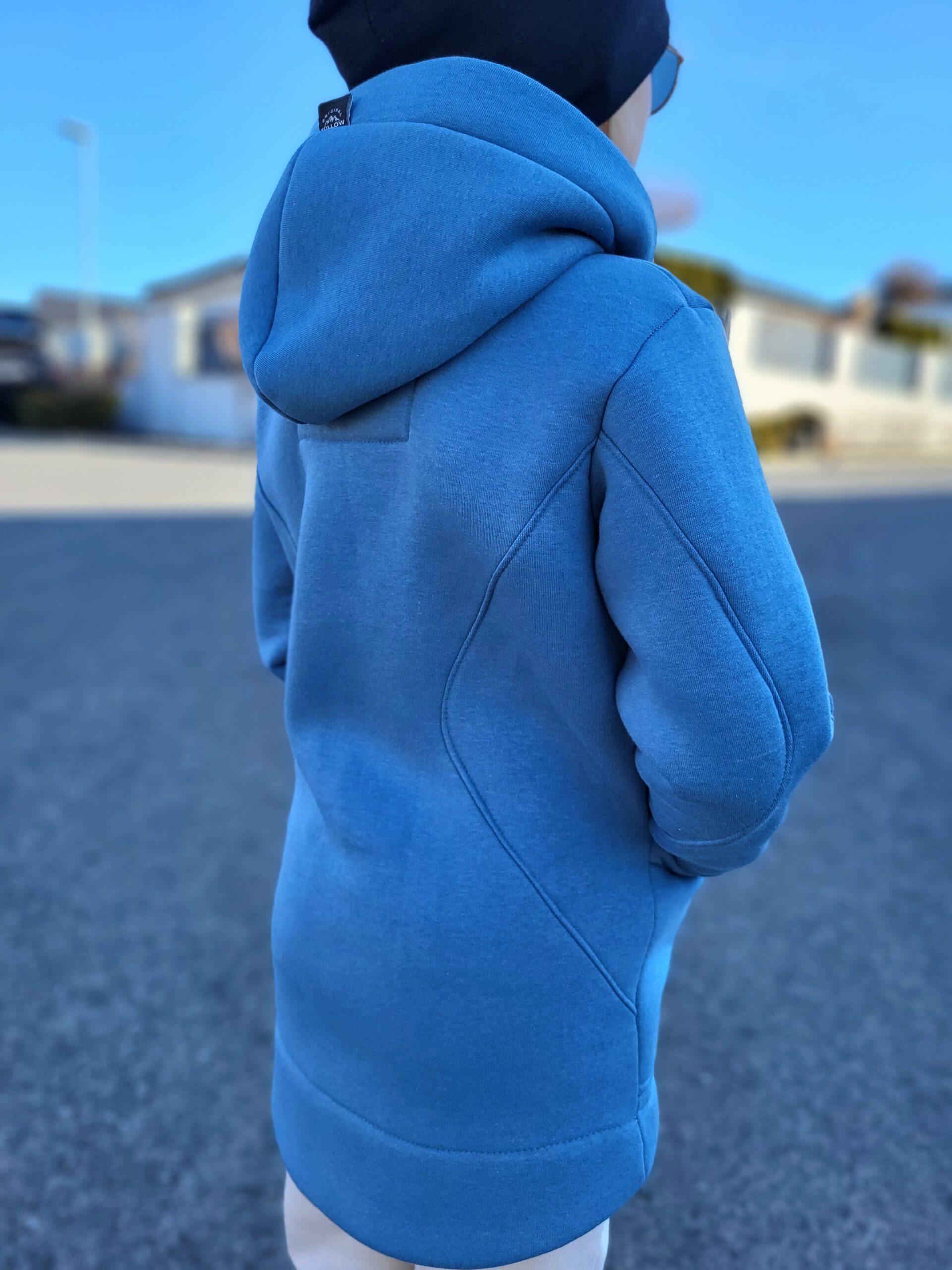 Mikina je predlženého strihu s kapucňou ,vreckami a zapínaním na zips. Rukávy sú ukončené manžetou. Perfektne sedí, je pohodlná.