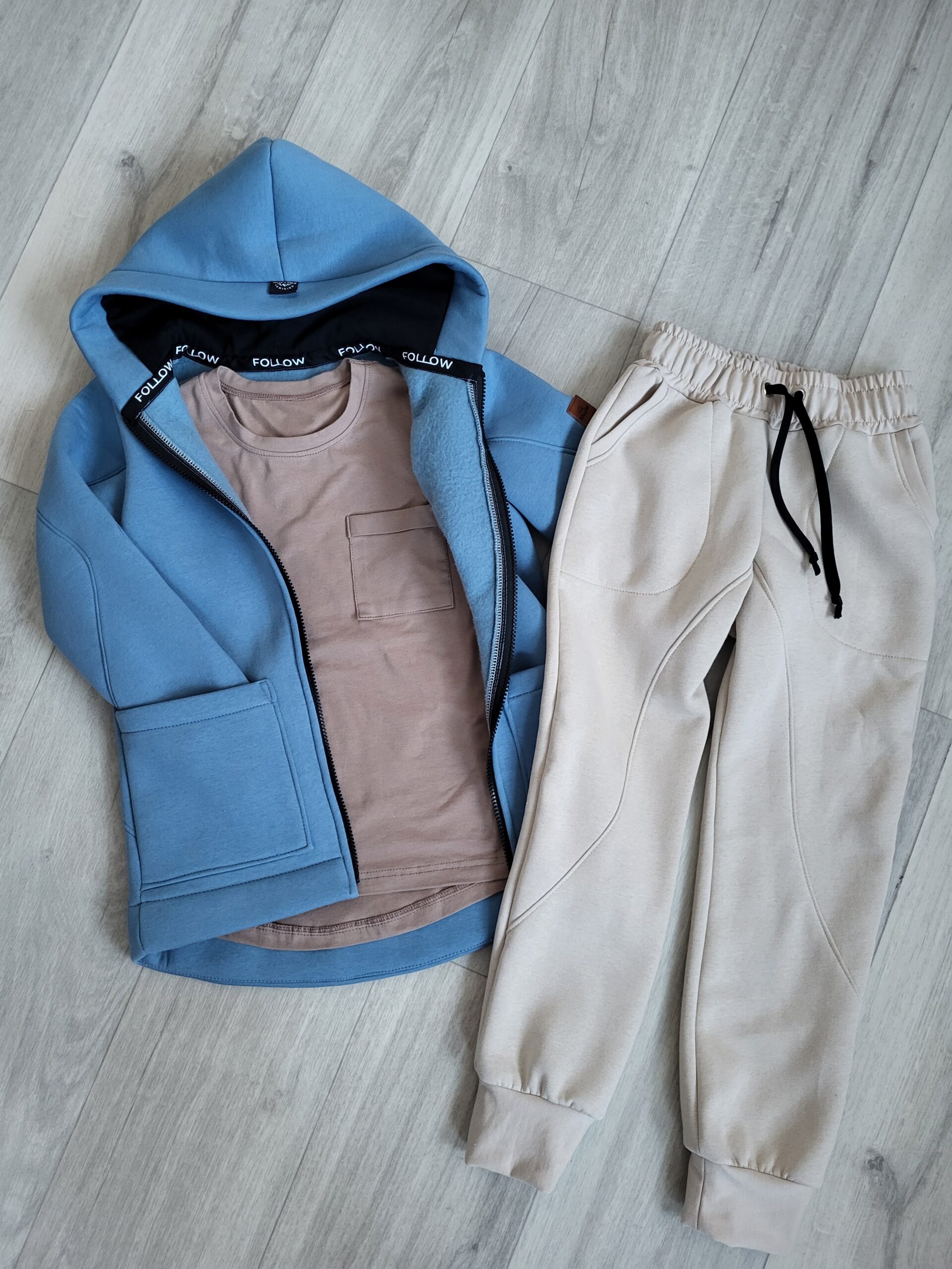 70% bavlna 30% polyester 240g/m² – 280g/m². Počesaná teplákovina z vnútornej strany jemný chĺpok .