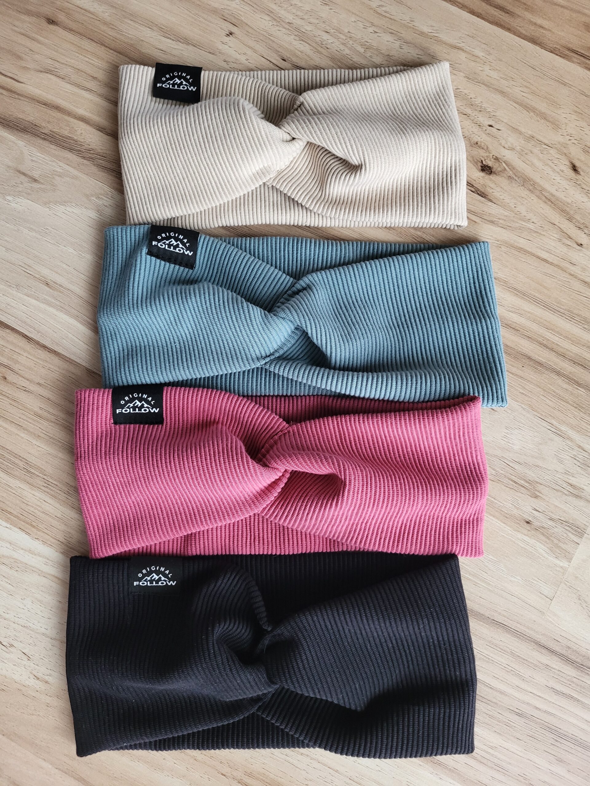 Dvojvrstvová rebrovaná čelenka z bavlneného elastického úpletu. Šírka čelenky je 10 cm.