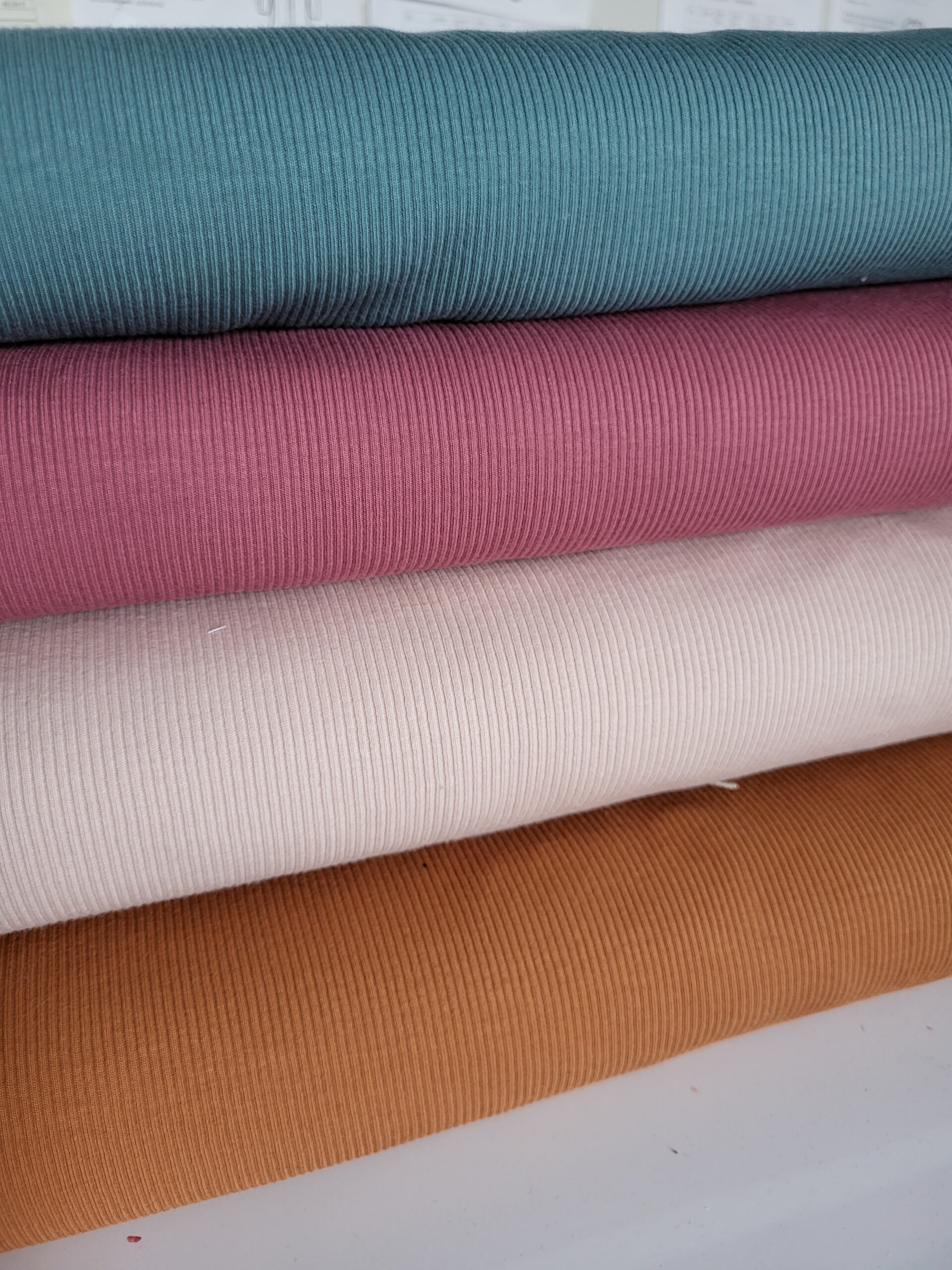 95% bavlna 5% elastán – 230 g/m² Rebrovaný elastický bavlnený úplet príjemný na dotyk.