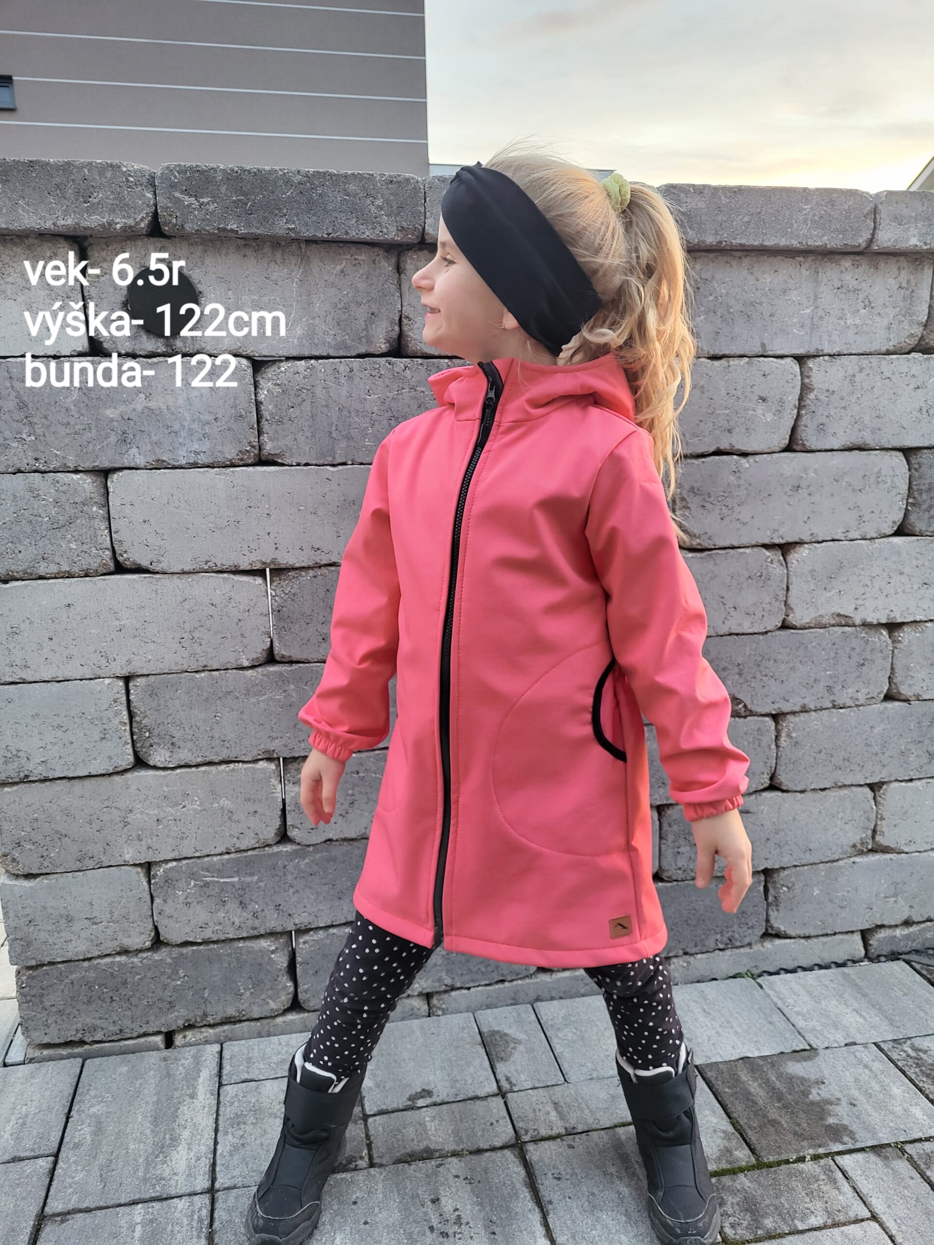 Štýlová softshellová bunda simple je ušitá zo zimného softshellu. Je predĺženého strihu s kapucňou, vreckami, vzadu stiahnutá gumou. Rukávy sú ukončené s riasením do gumičky. Vnútorná časť je z fleecu. Perfektne sedí, je pohodlná. Šnúrka v kapucni je voliteľná iba od veľkosti 140.