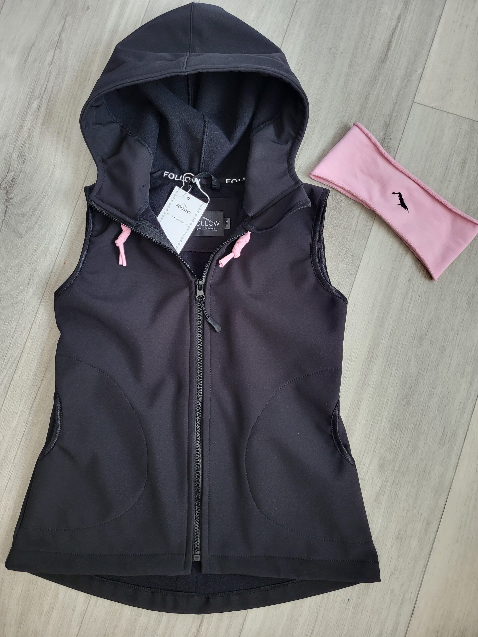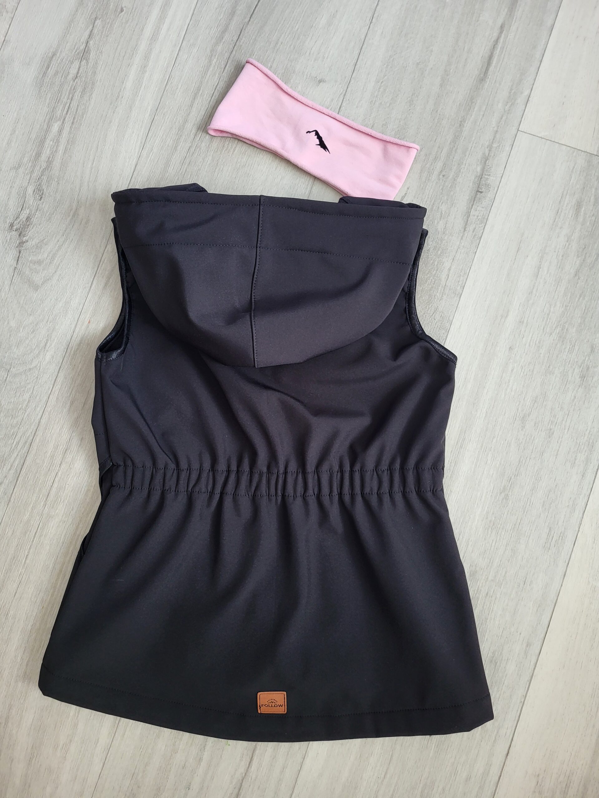 Štýlová softshellová vesta je ušitá zo zimného softshellu. Je predĺženého strihu s kapucňou a vreckami. Vnútorná časť je z fleecu. Perfektne sedí, je pohodlná. Šnúrka v kapucni je voliteľná iba od veľkosti 140.