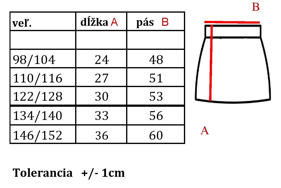 VEĽKOSTNÁ TABUĽKA: