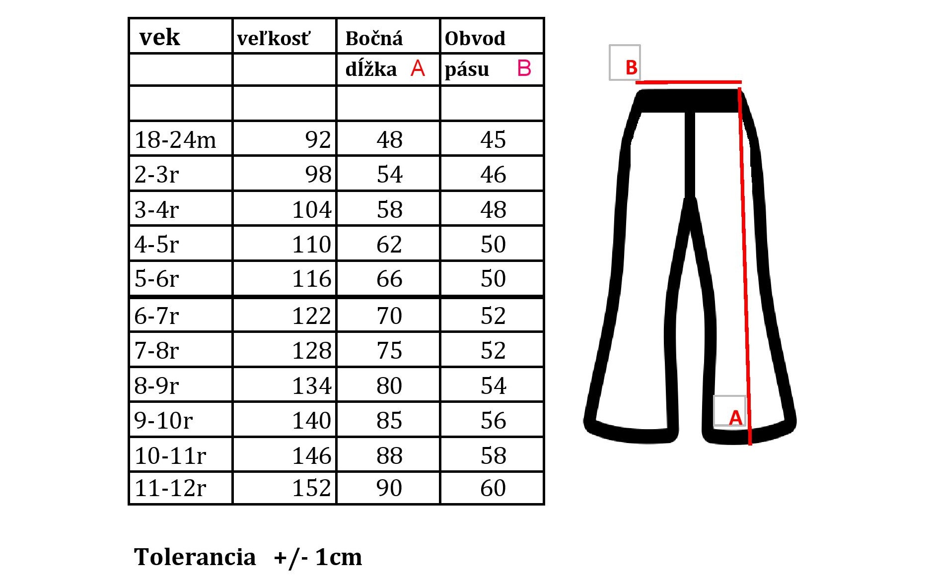 VEĽKOSTNÁ TABUĽKA: